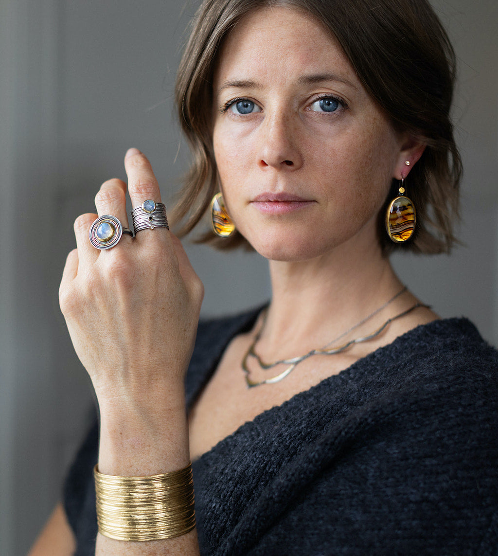 Austin Titus is a jewelry designer from Richmond, Virginia. She finds beautiful juxtaposition between the industrial elements of living in a historical city contrasted with the natural world around her. When she is not in her studio she enjoys walking the city streets with her dog, Lola.